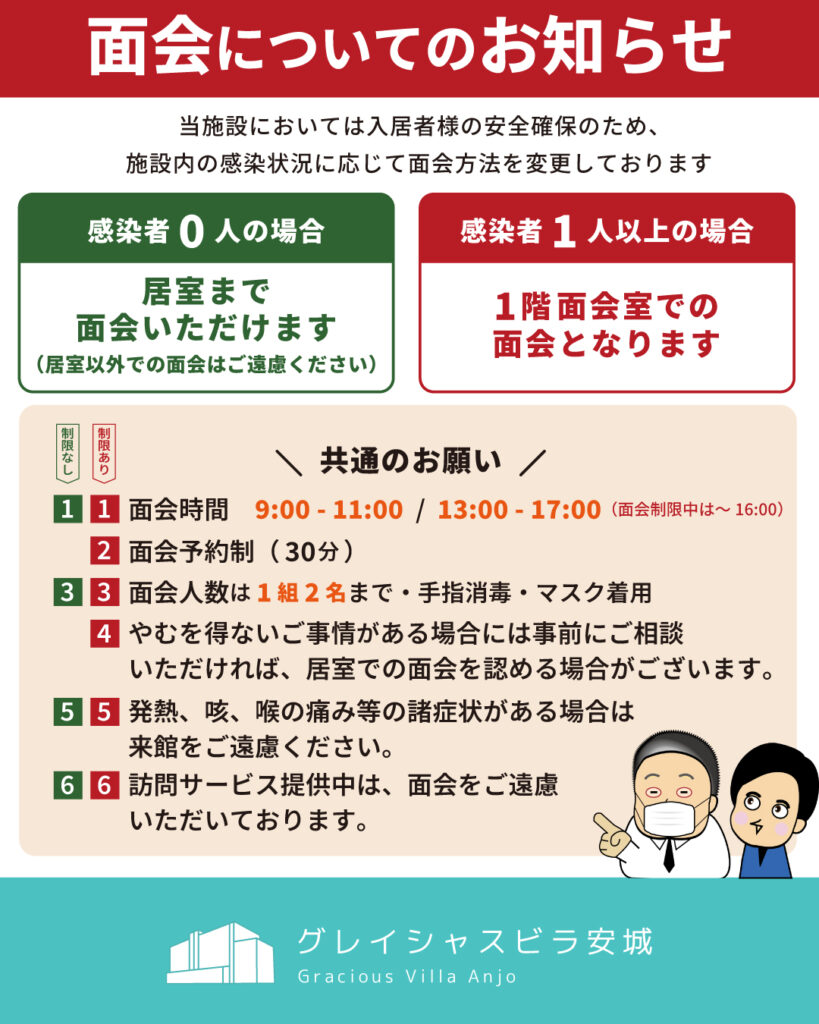 皆さまに安心してお過ごしいただくため、下記の内容をご確認のうえ、ご理解とご協力をお願いいたします。